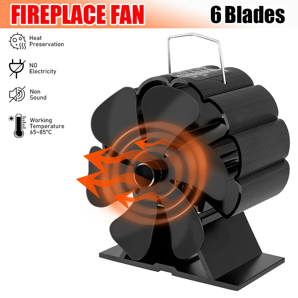 - 6 bıçaklı isı Powered pelet sessiz şömine sıcak hava asılı soba fanı çevre dostu ahşap/Log brülör 5-6 inç baca borusu