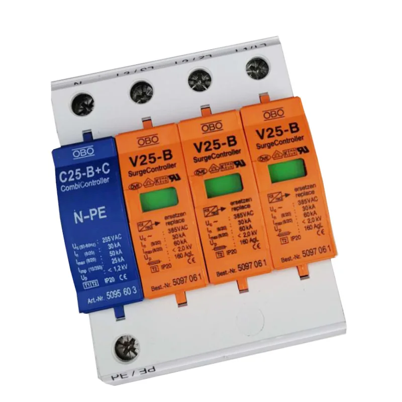 1. OBO lightning arrester surge protector V25 B+C 3+NPE 4P household three phase 385V surge source arrester