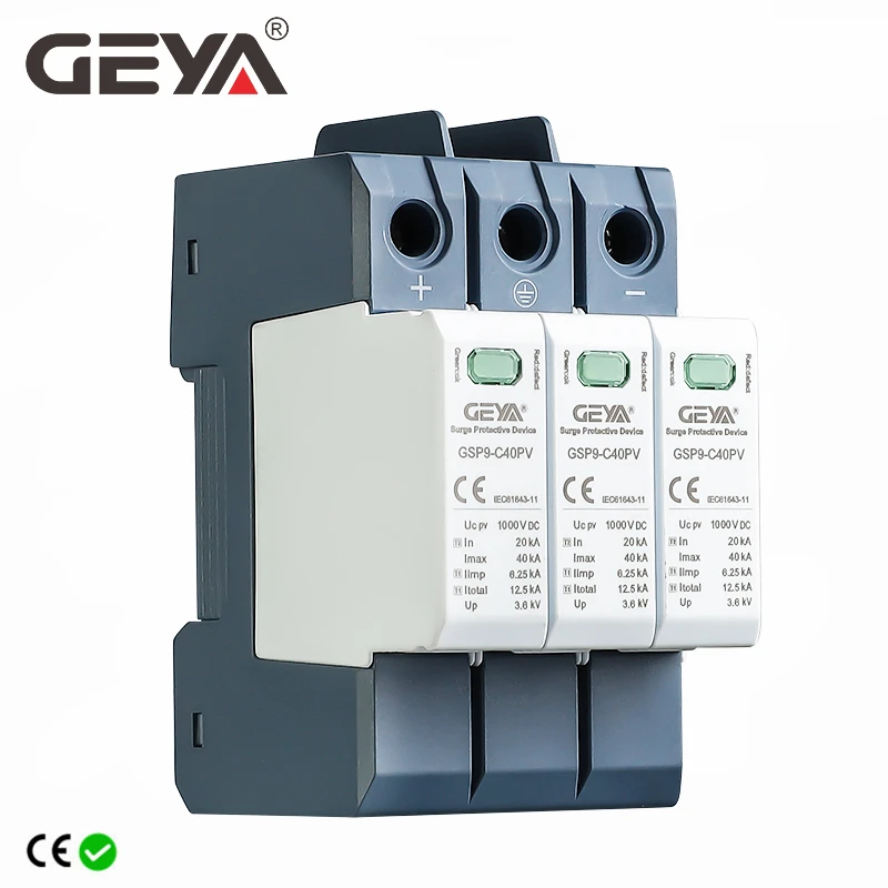 - GEYA GSP9 3P güneş PV alçak gerilim DC SPD Din ray DC 600V 1000V 1500V 40KA parafudr yıldırım koruyucu