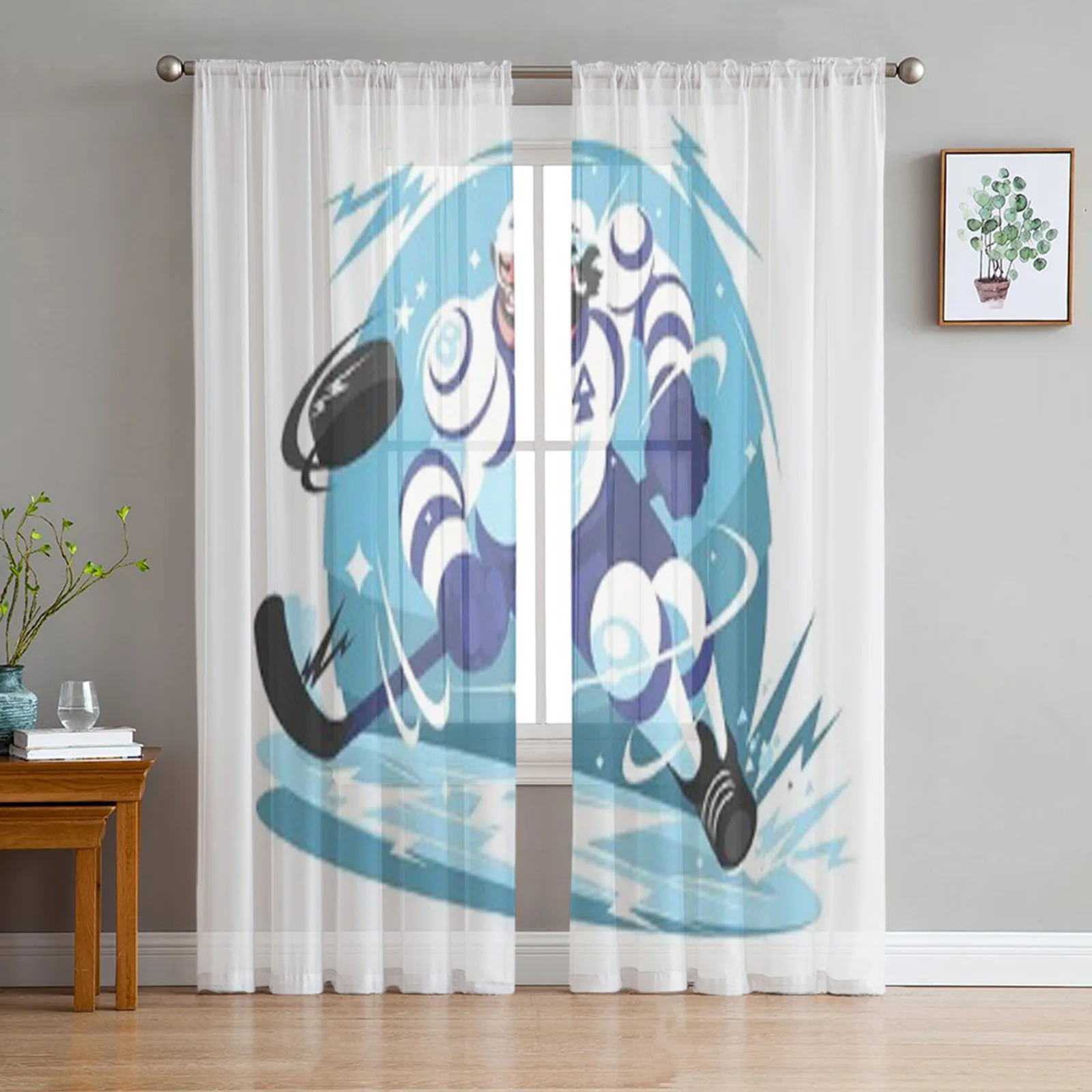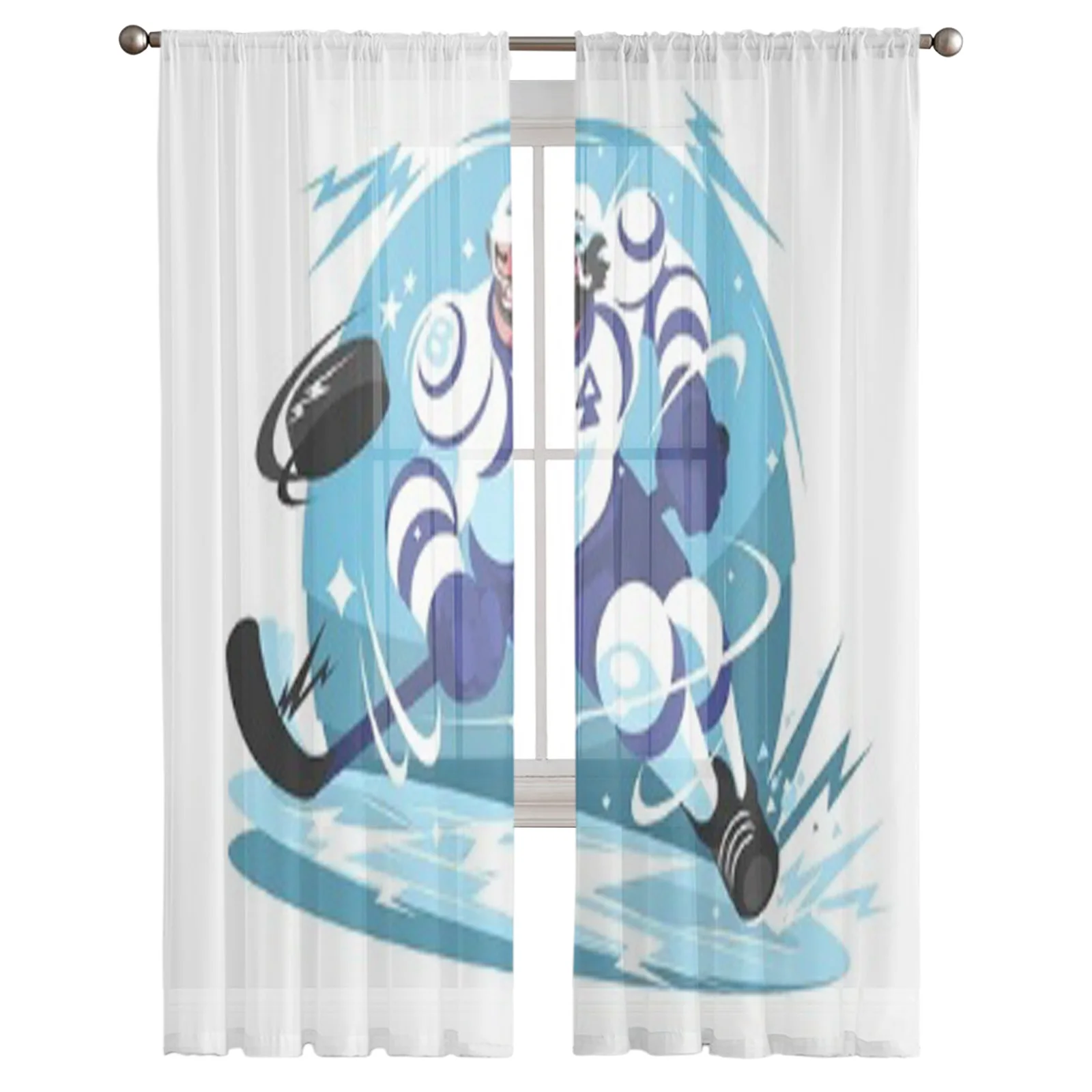 1. Buz hokeyi takım oyuncusu sopa ve pak cumbalı pencere tarama perdeleri voyile oturma odası yatak odası için vanze şeffaf tül