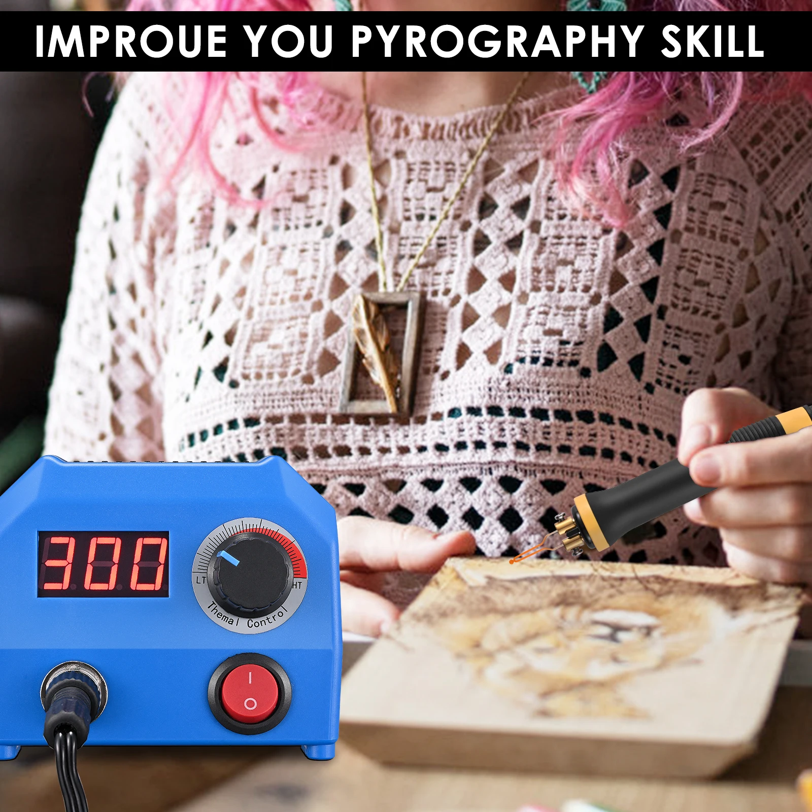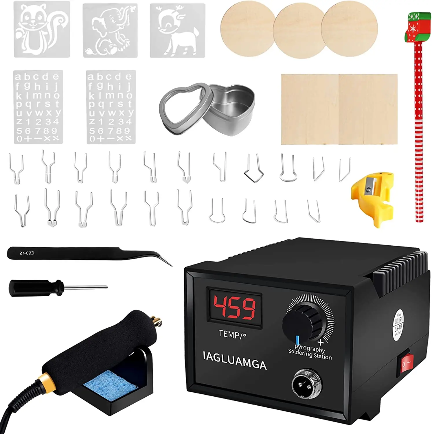 - Ahşap yakma kiti Woodburning aracı ile havya ayarlanabilir sıcaklık brülör alet takımı kabartma oyma el sanatları DIY