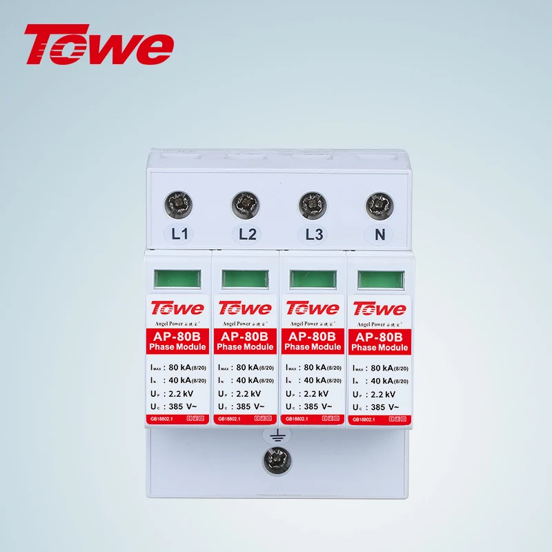 - B sınıfı, 80kA üç fazlı düşük gerilim dalgalanma koruma cihazı paratoner SPD endüstriyel 380V AC güç kaynağı sistemi